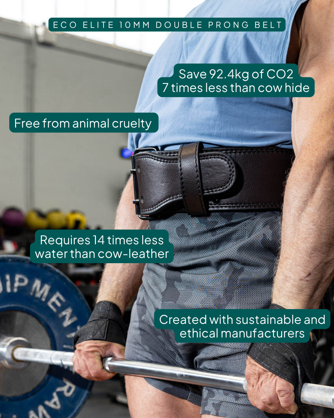 Though I've tried lifting belts before (different brand I won't name drop bc the vegan belt options are few), and they were just not for me - my first belt was a lever belt, and it would never stay in place, and my old prong belt was so ridiculously thick that it wouldn't thread through the belt loop! Picture the belt jutting out several inches in front of you. 🫠 What a sight to literally wrestle with getting your own belt on and off!